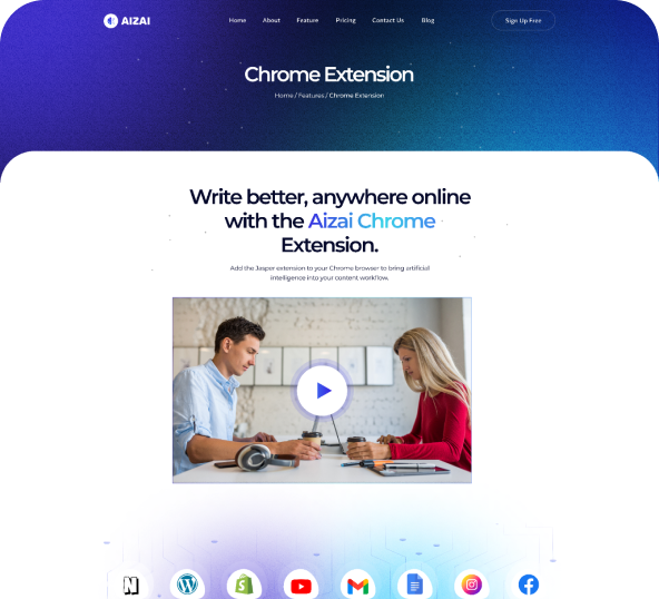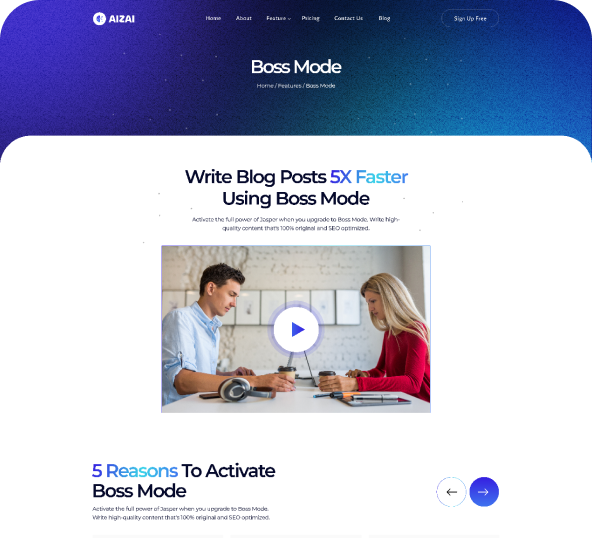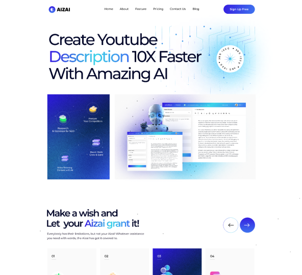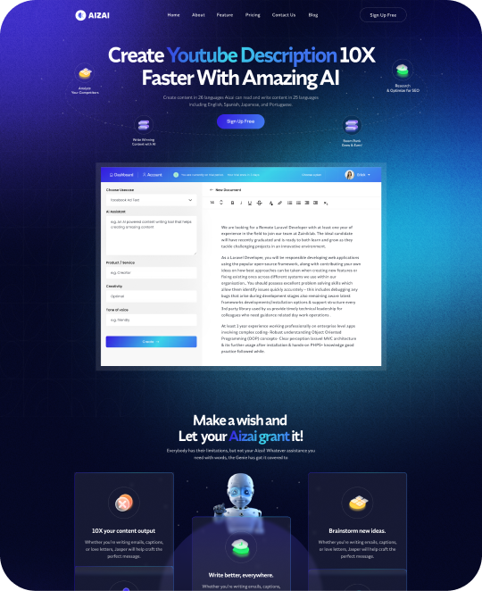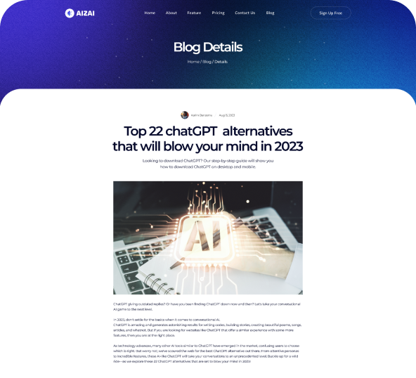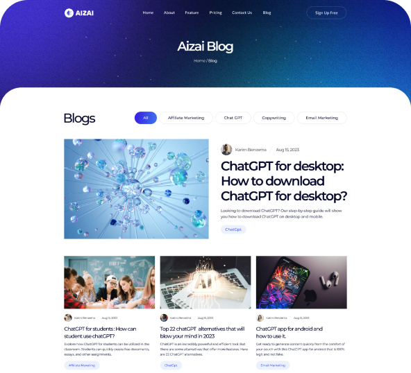 Aizai has 2 Stunning Home pages design. Including Ai content generator platform You can create amazing site by using these templates.