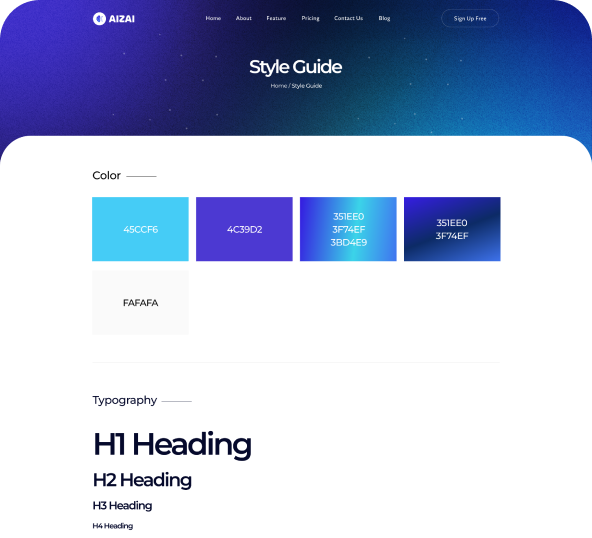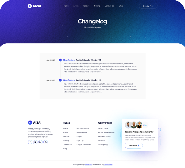 Aizai Webflow Template includes 15+ pages in total, with more than 50 sections, and 2 different home pages and amazing features